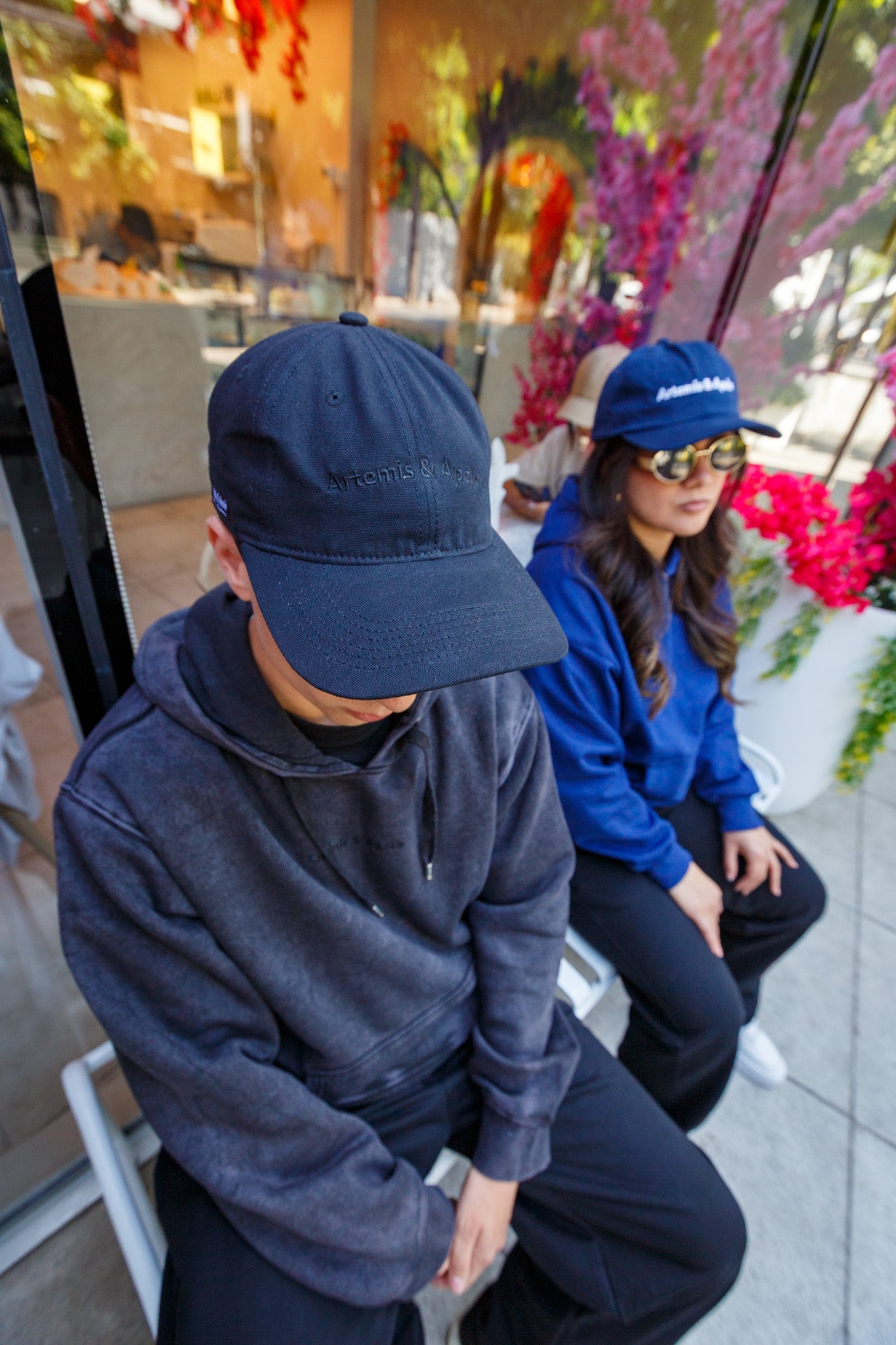 El bordado frontal de nuestro logo “Artemis & Apolo” en negro se complementa elegantemente con el tono negro de la gorra.