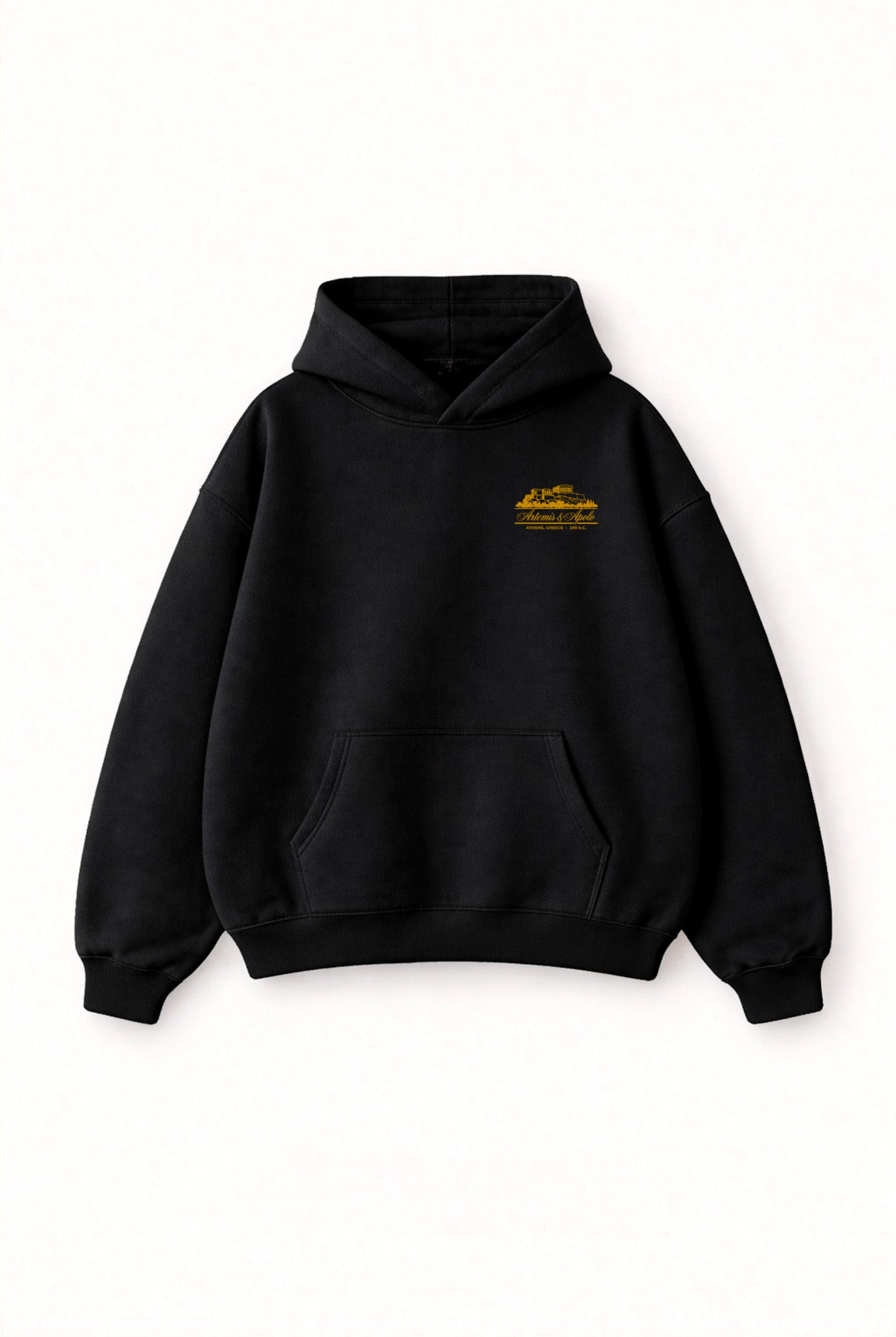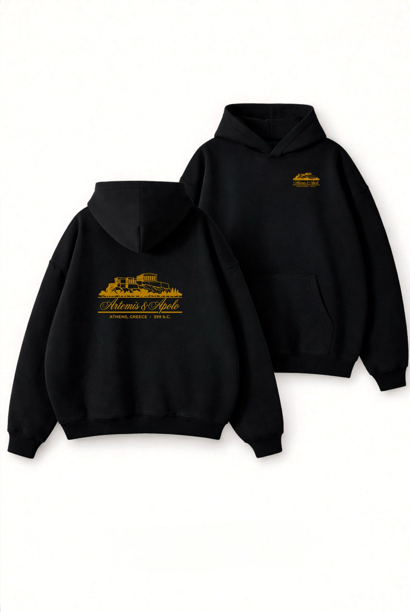 Un hoodie de estilo urbano con inspiración clásica. Este polerón negro destaca por su diseño minimalista al frente y un estampado protagonista en la espalda con ilustración arquitectónica y detalles en tono dorado, evocando la esencia de la antigua Grecia. Una prenda versátil, cómoda y con personalidad, ideal para quienes buscan un look moderno con un toque histórico y sofisticado.